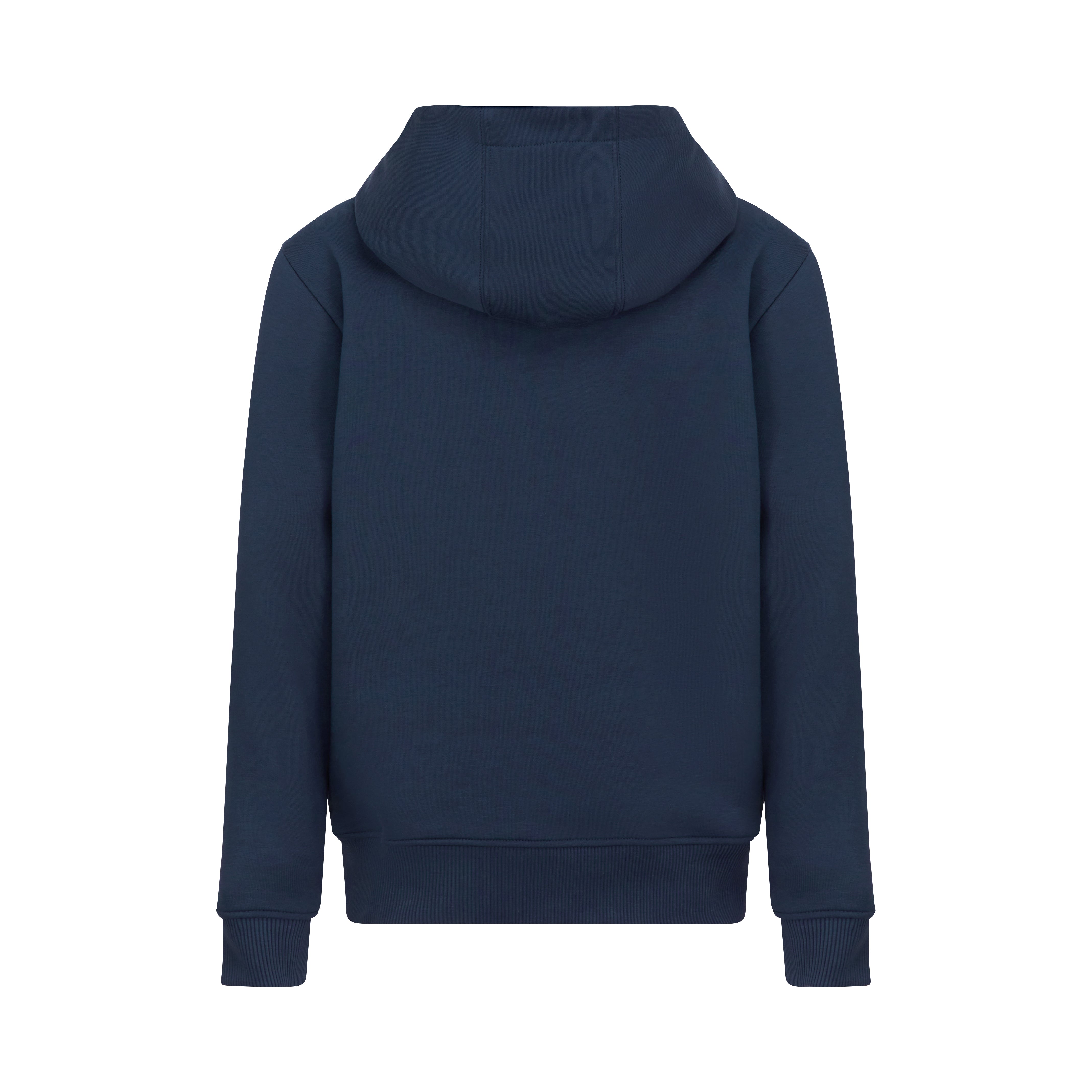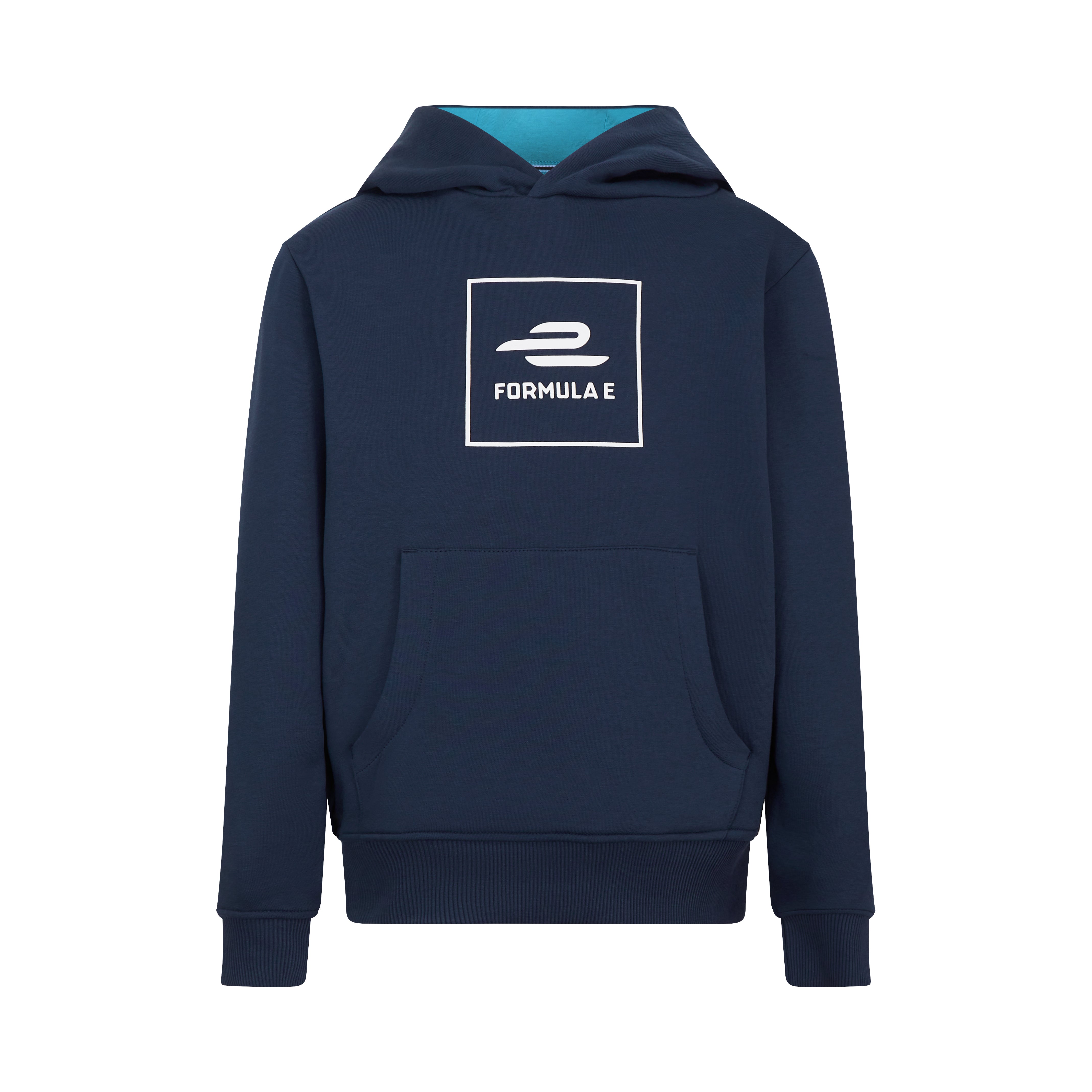 Keep young fans cozy and stylish with the Formula E Kids Essentials Navy Hoodie. Made from a soft, sustainable blend of 80% organic cotton and 20% recycled polyester, it features the Formula E logo on the chest, a handy kangaroo pocket, and a contrast jersey-lined hood for extra comfort. Ribbed cuffs and hem ensure a snug fit, perfect for everyday adventures.