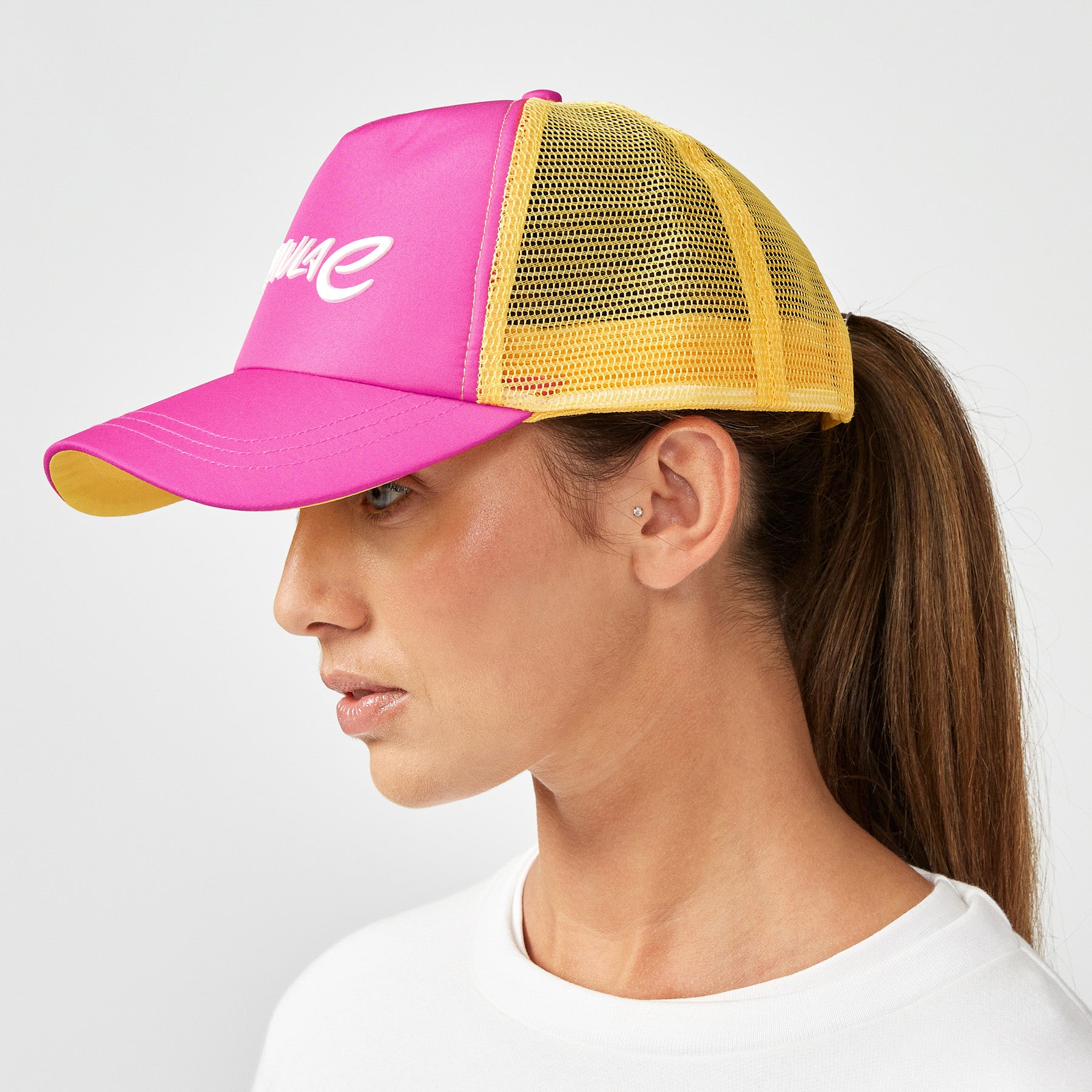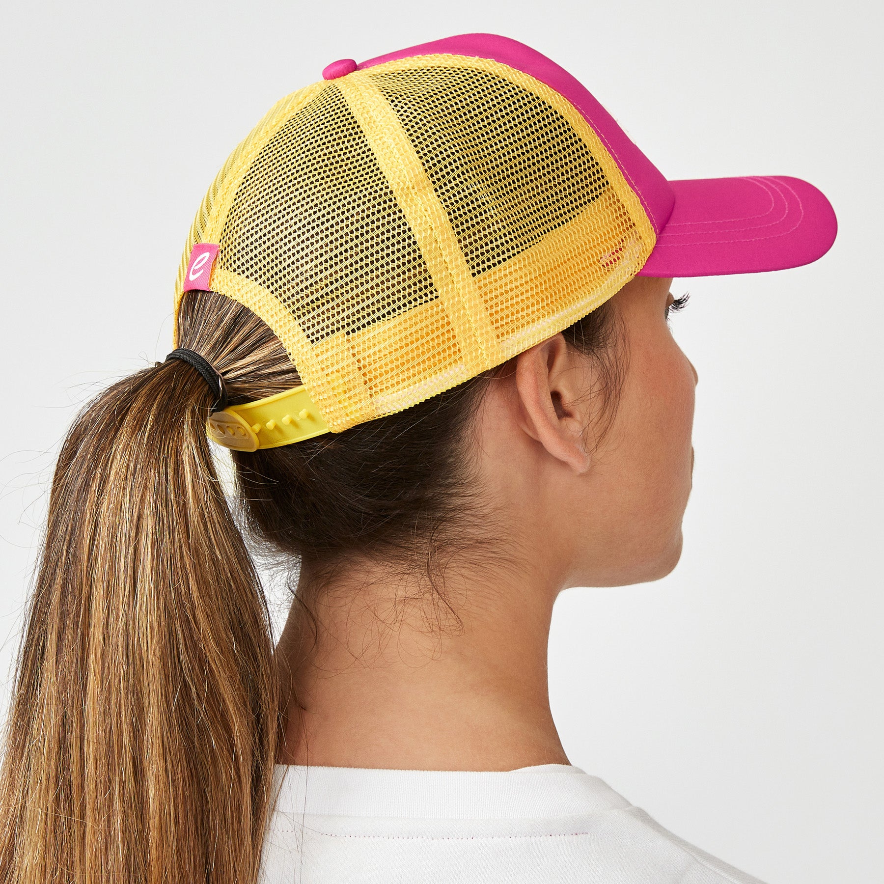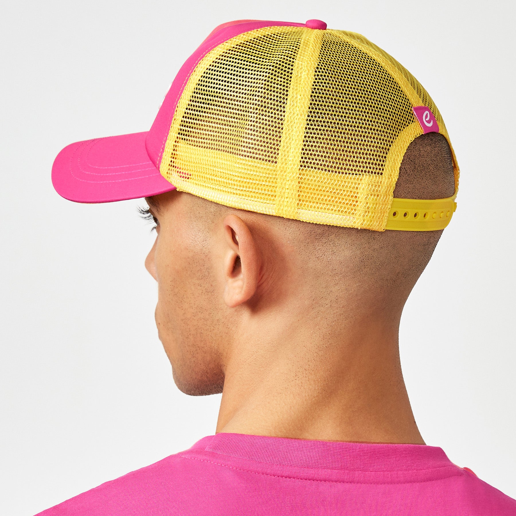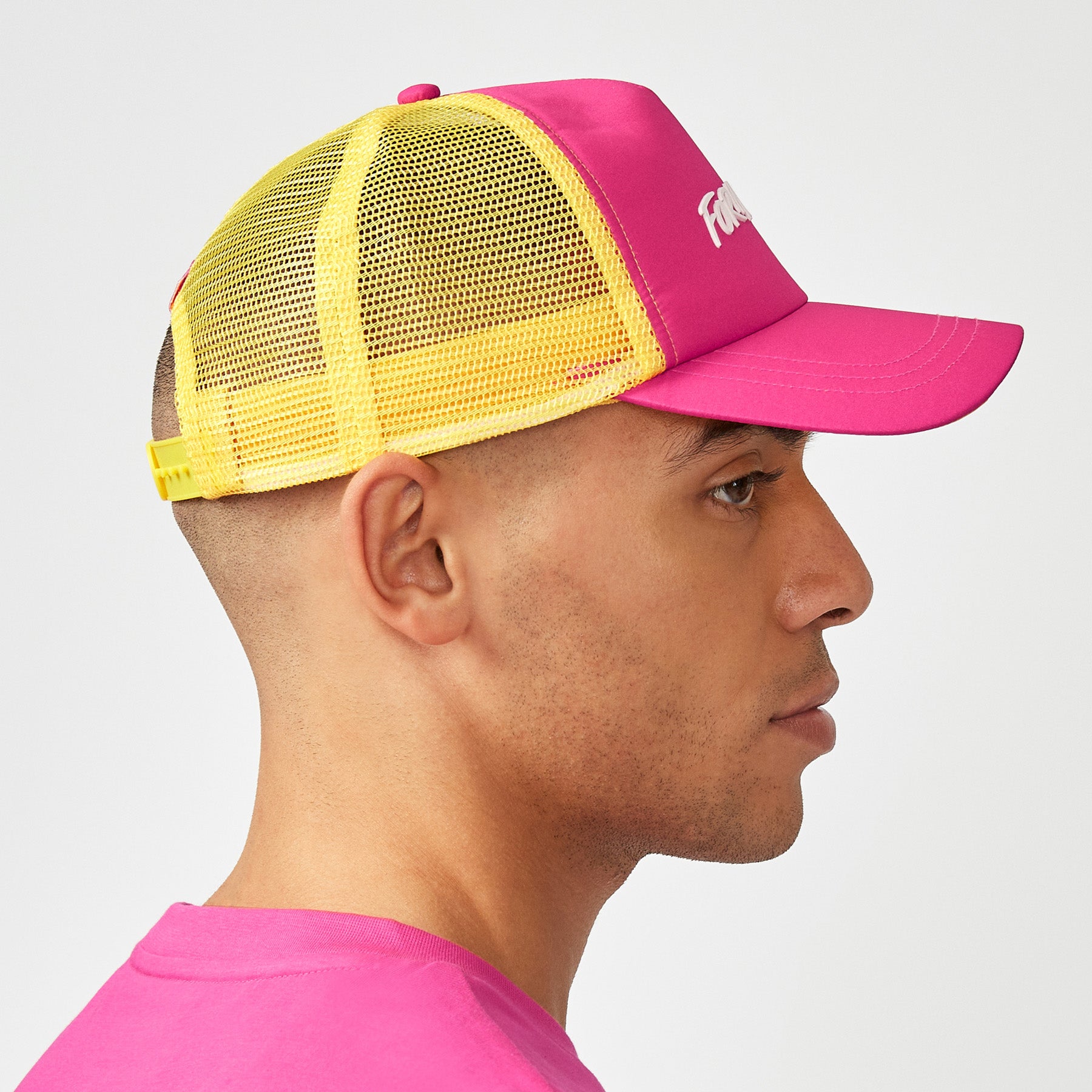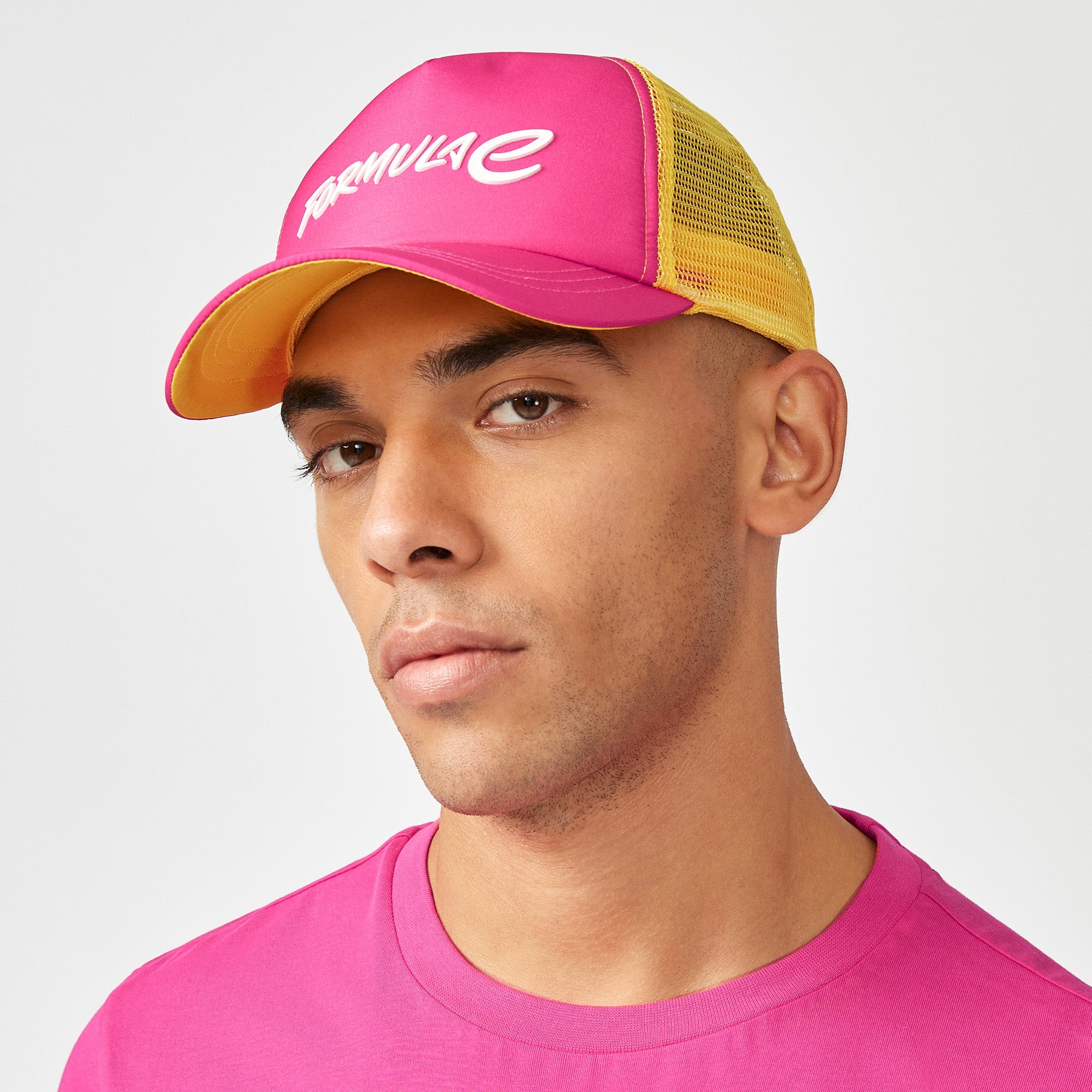 Show your support for electric racing with the Formula E Unisex Wordmark Pink Trucker Hat. Made from 100% recycled polyester, this stylish trucker cap features a breathable mesh back for comfort and the bold Formula E wordmark embroidered on the front. The folded “E” logo label at the rear adds a signature touch, while the contrasting color under-peak and adjustable snap-back fastening ensure a perfect fit for all-day wear.