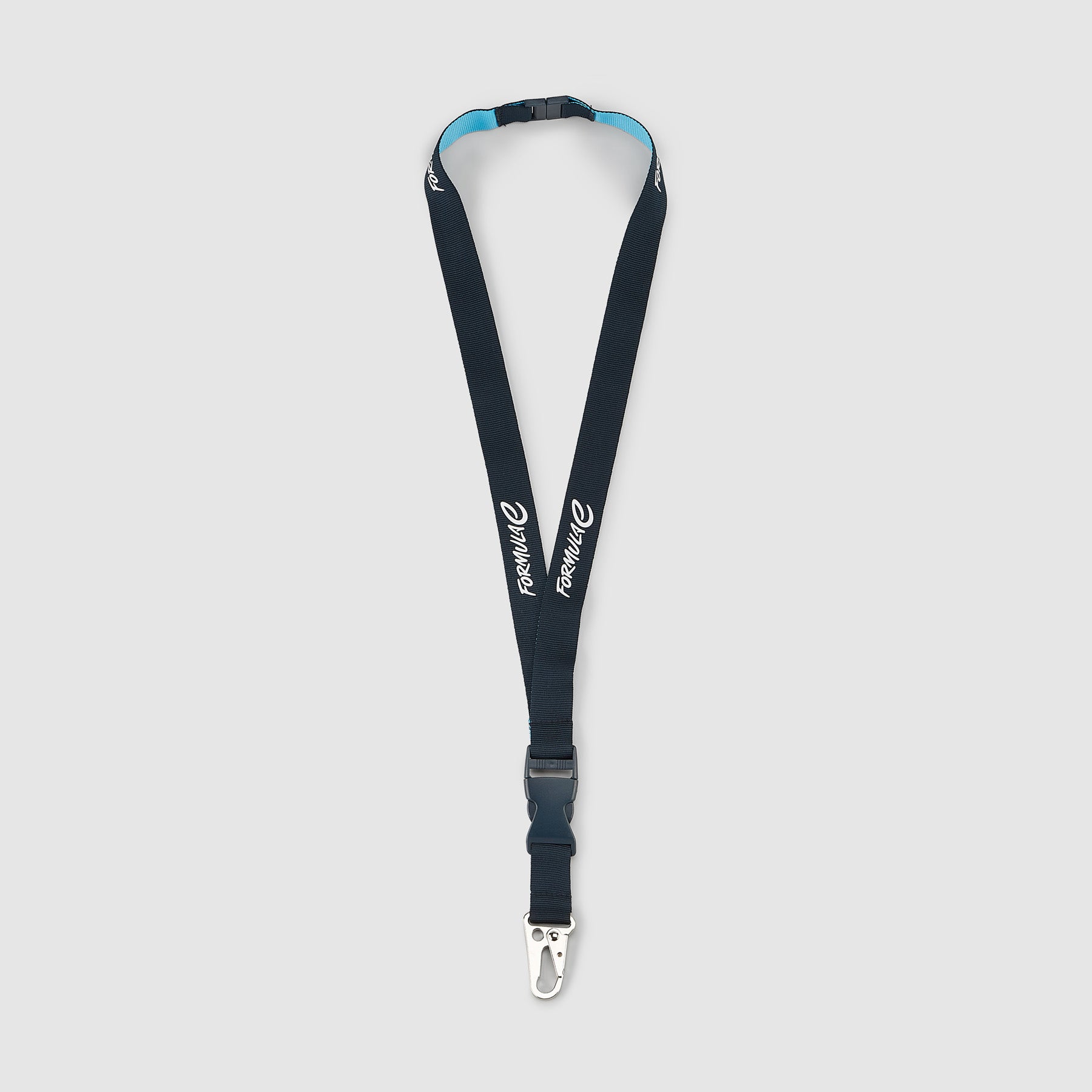 Practical and bold, the Formula E Blue Lanyard is made from durable 100% polyester. One side features a navy background with the Formula E logo, while the other side showcases a vibrant blue design.