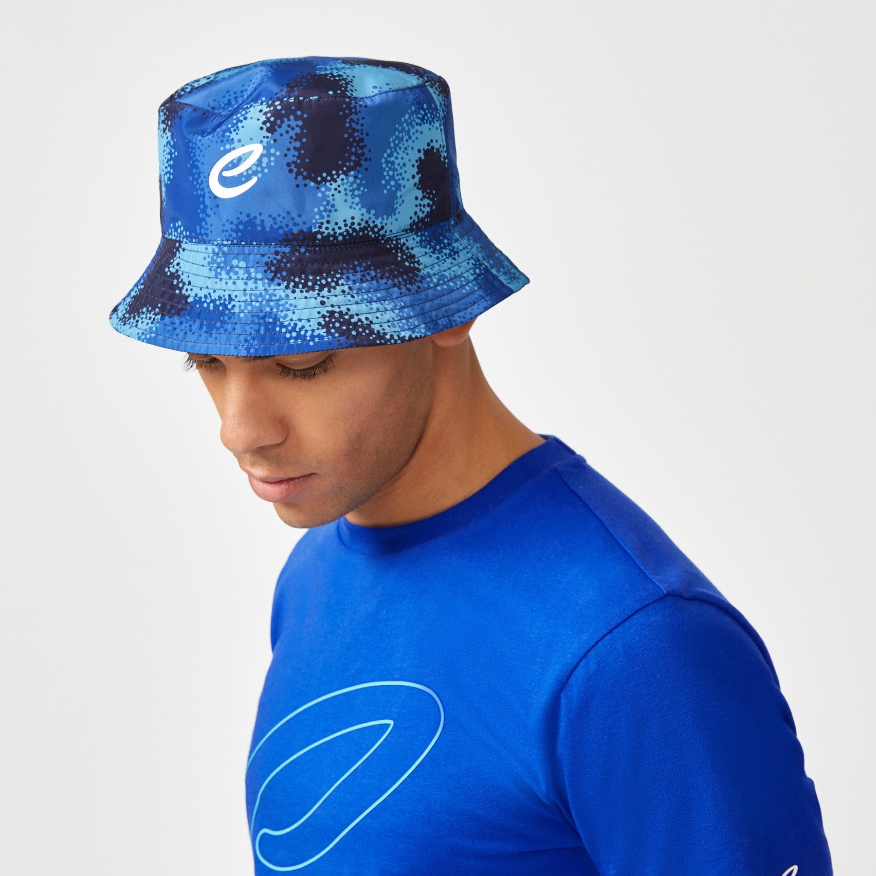 Two styles in one, the Formula E Blurred Blues Reversible Bucket Hat offers versatility and bold design. Made from 100% recycled polyester, one side features an all-over blurred print with an E logo, while the reverse showcases a solid colour with a gradient wordmark print.