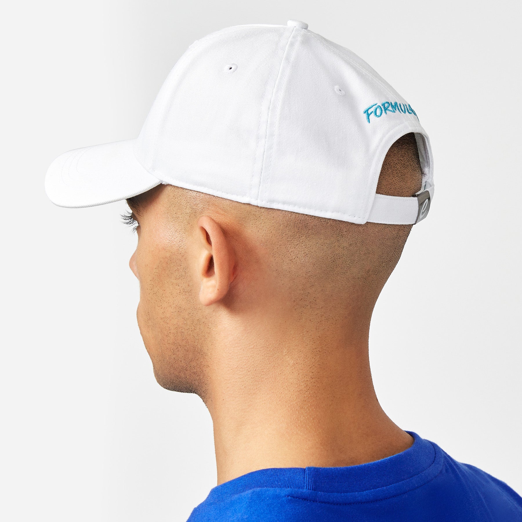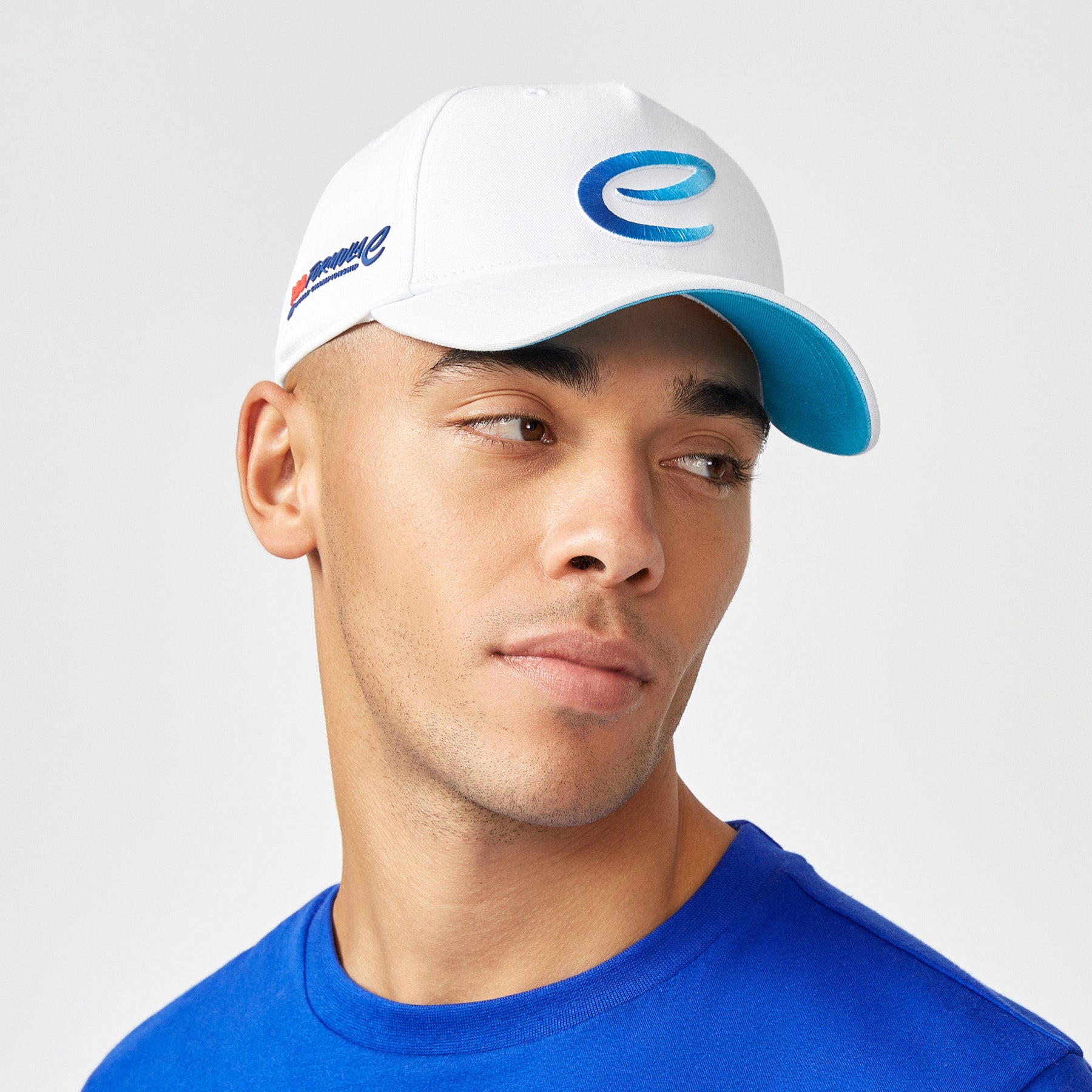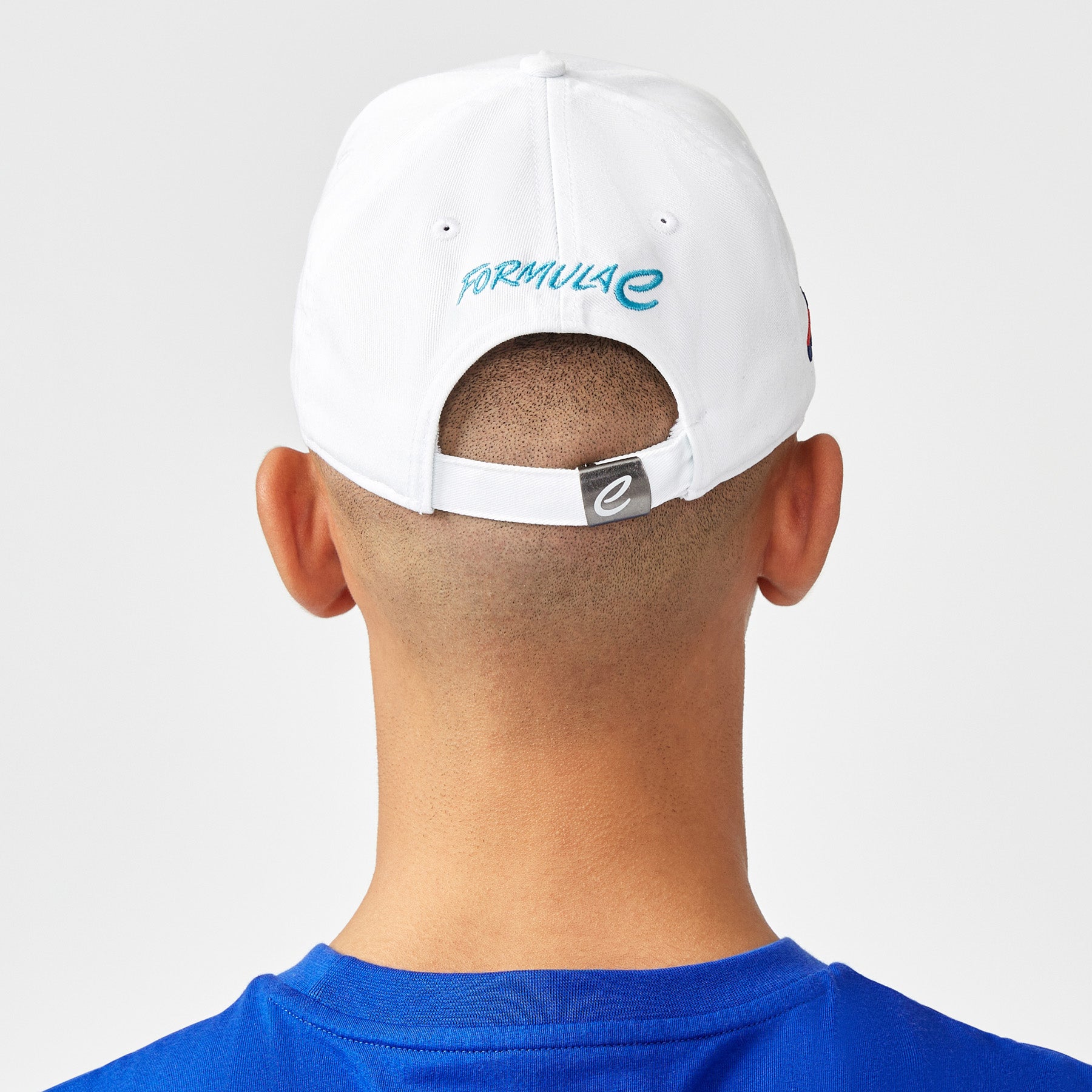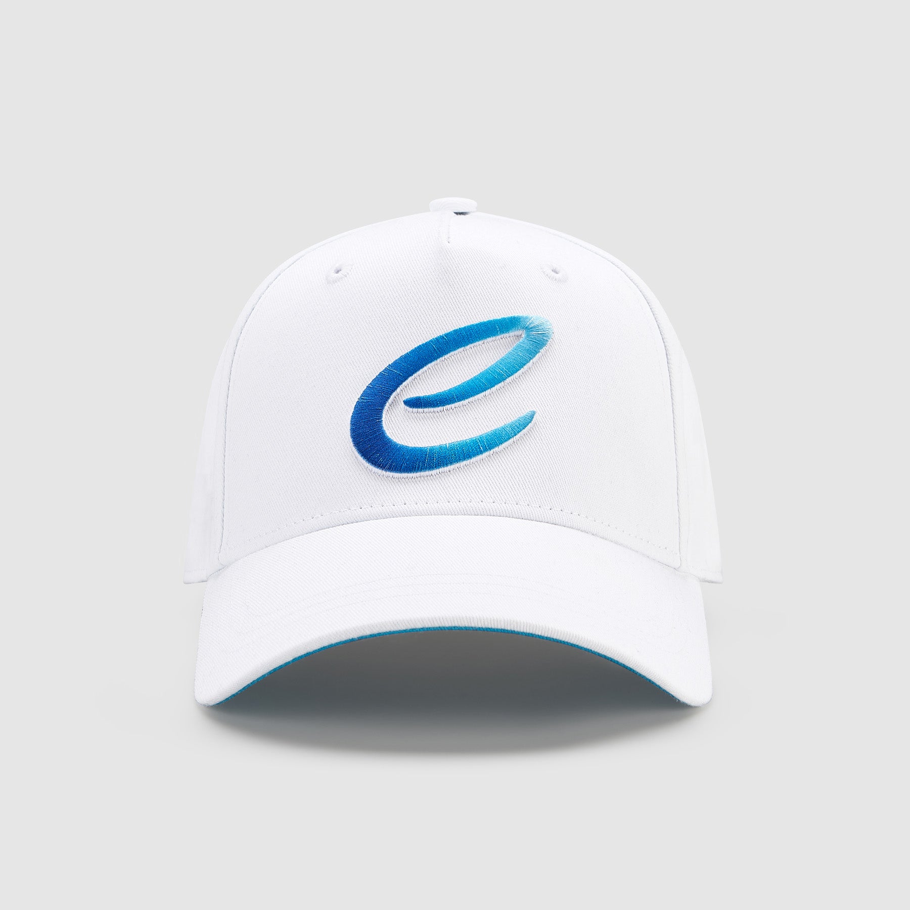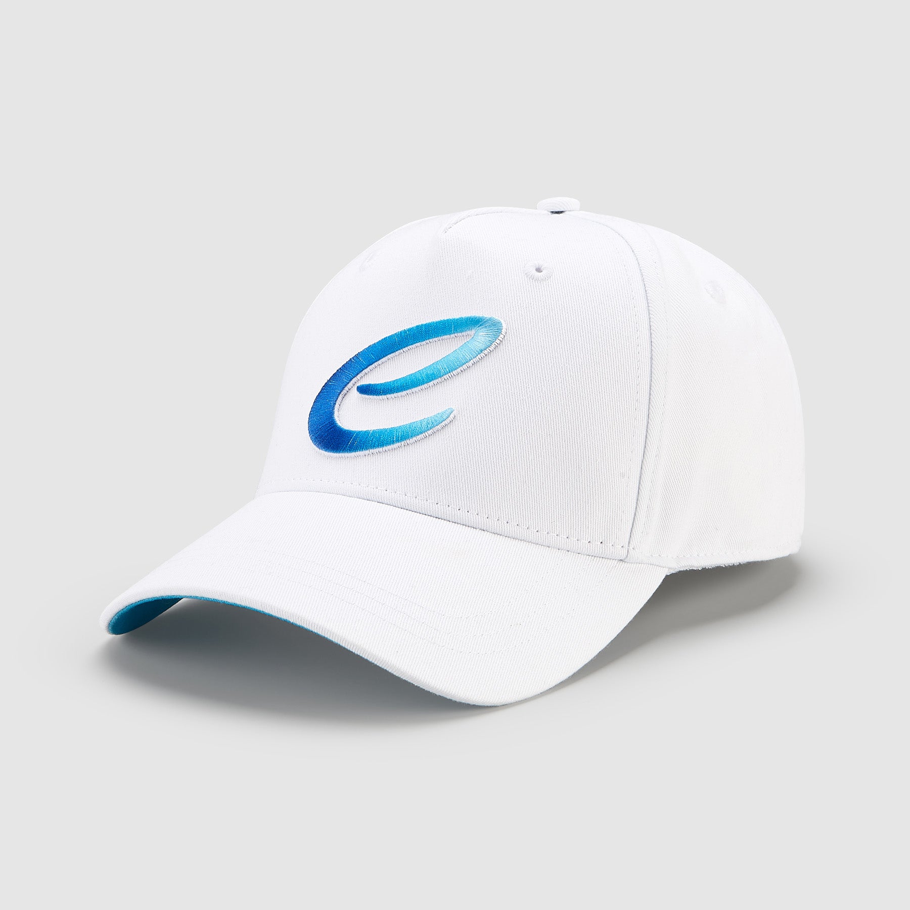 Fresh and modern, the Formula E Gradient Logo White and Blue Hat is crafted from 100% organic cotton for all-day comfort. This 5-panel baseball cap features a gradient embroidered E logo on the front, a wordmark at the rear, and a contrast under-peak for added flair. Finished with a branded metal strap adjuster for a secure, adjustable fit.