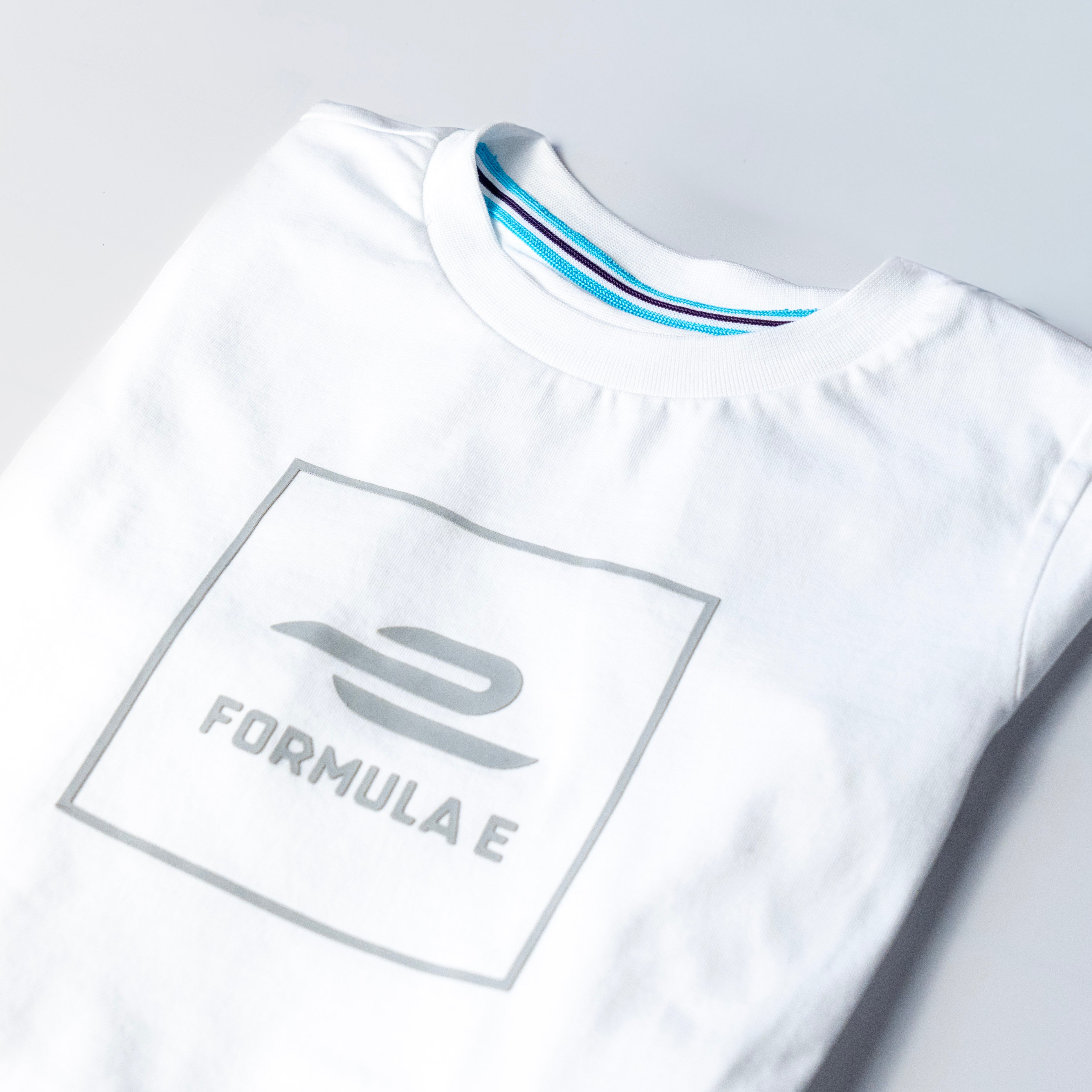 Made from 100% organic cotton, the Formula E Kids Essentials White T-shirt is soft, comfortable, and eco-friendly. It features the Formula E logo printed on the chest, a ribbed collar for a snug fit, and a woven Formula E loop label on the rear hem for subtle branding. Perfect for everyday wear for young fans of electric racing.