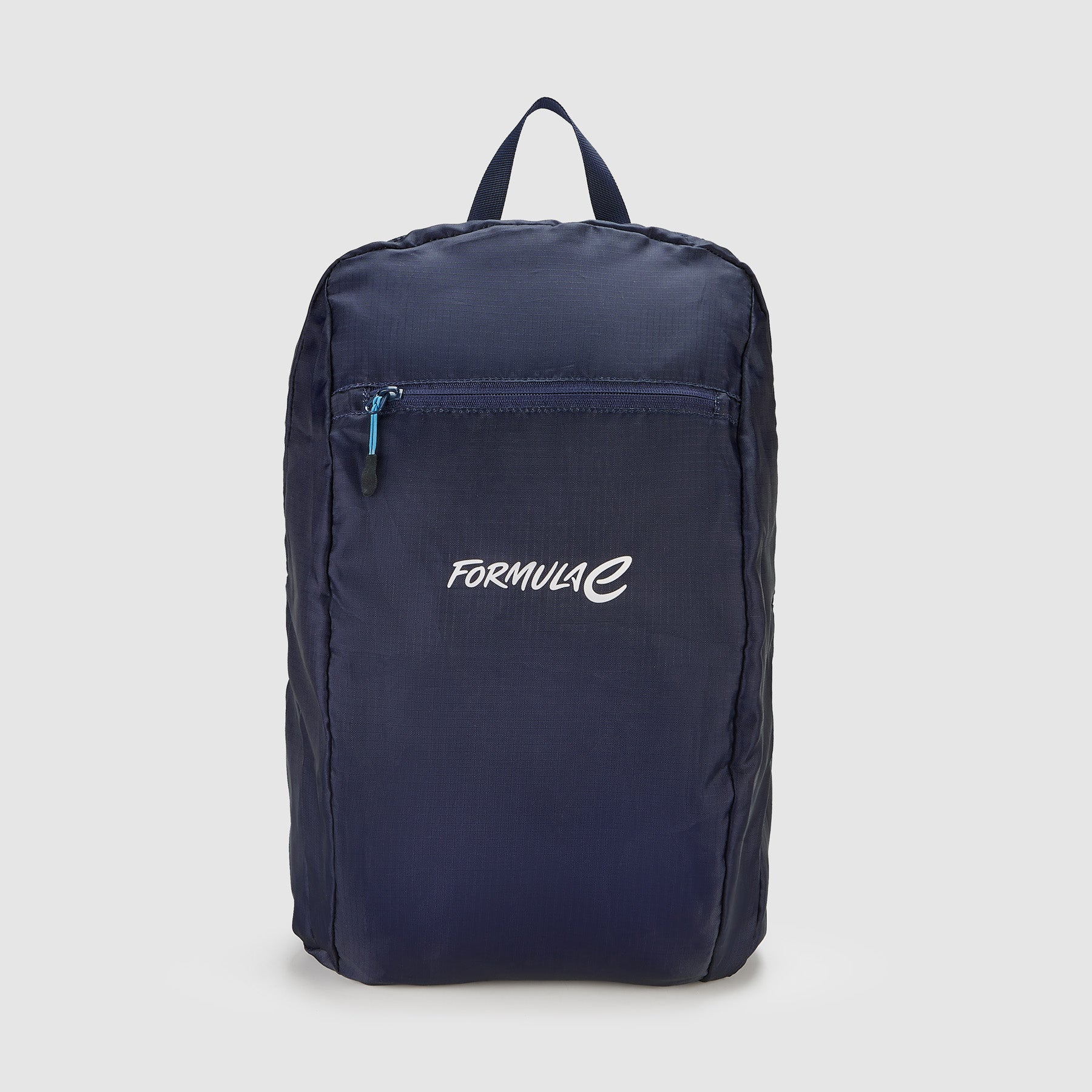 Lightweight, practical, and stylish — the Formula E Navy Packable Backpack is designed for everyday use and convenience. Made from 100% polyester, this backpack easily folds into its own front zip pocket, making it perfect for travel or on-the-go storage. It features a bold Formula E wordmark print on the front, the signature E logo on the strap, and striped webbing tape adjusters for a sporty touch. Lightly padded shoulder straps and a top carry handle ensure comfortable carrying all day long.